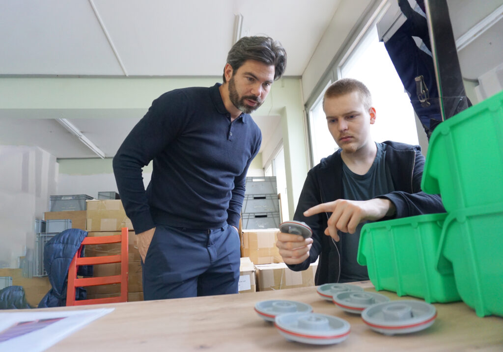 Foto: Ein Mitarbeiter der Unique mit Gregor Jell bei einer Projektarbeit in den Räumlichkeiten in Grassau im Chiemgau.
